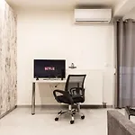 Skg Premium Studios, amueblado con sofá y un escritorio, está equipado con TV de pantalla plana con canales vía satélite, climatizador. Las habitaciones están equipadas con detectores de humo. El cuarto de baño está provisto de un inodoro separado de la ducha y ducha, además de secadores de pelo y toallas de baño.
